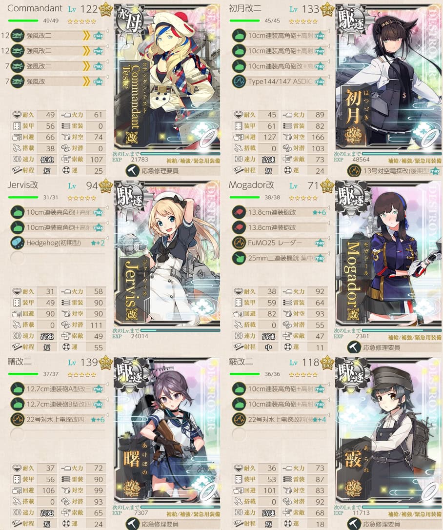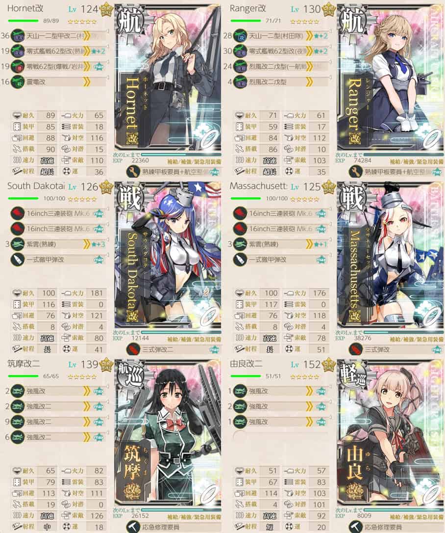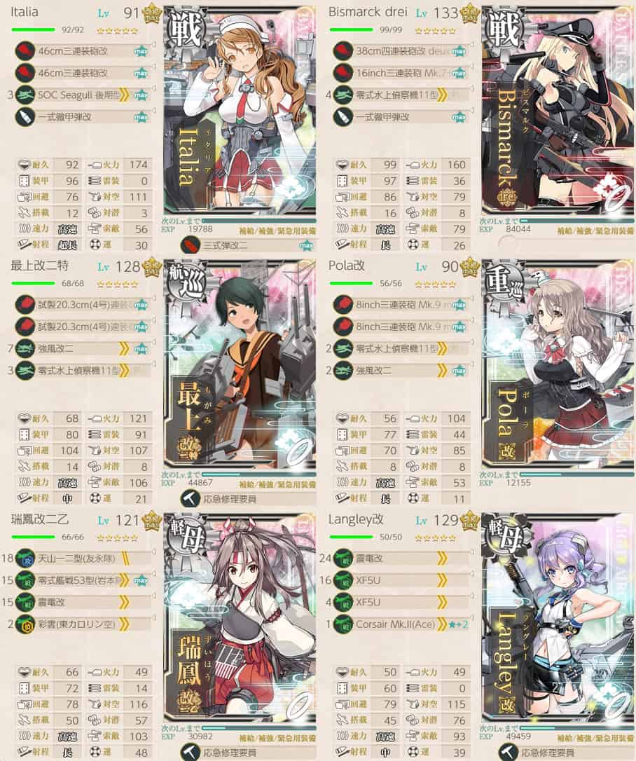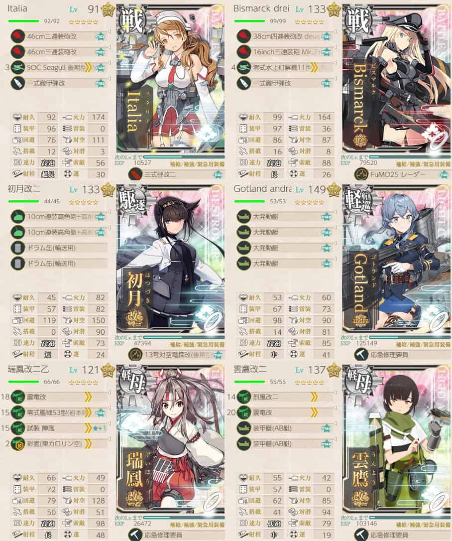 第二艦隊は健在なことが多く、そのうち突破できるだろうという印象でした。魚雷CIが出なかったりでちょっと焦ったけど……。