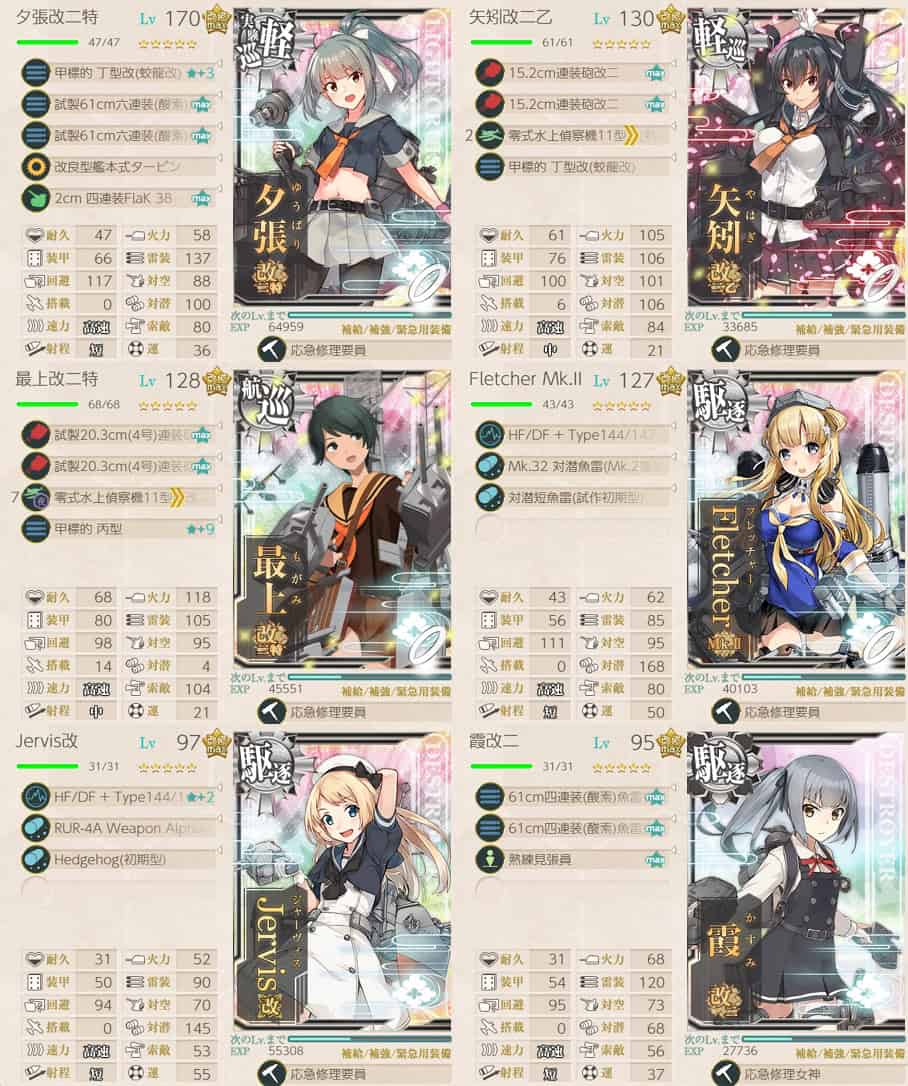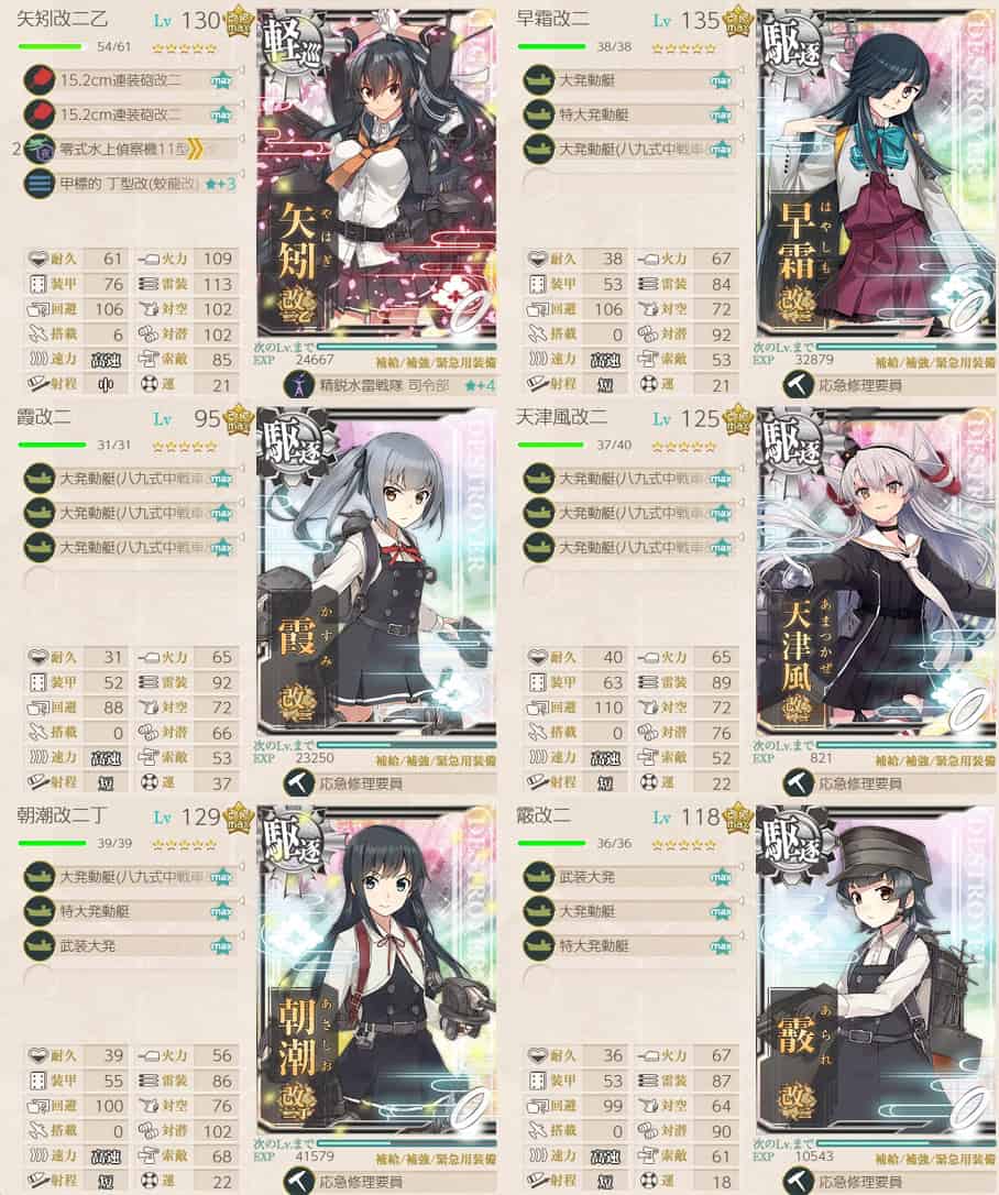 早霜改二を追加。いちおう特効艦なんですが、そんなに厳しいゲージではないのでここで使う必要性は乏しいかも。