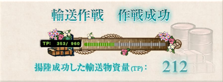 TPですが、出撃画面の「輸送力」でS勝利時のTPが確認できます。