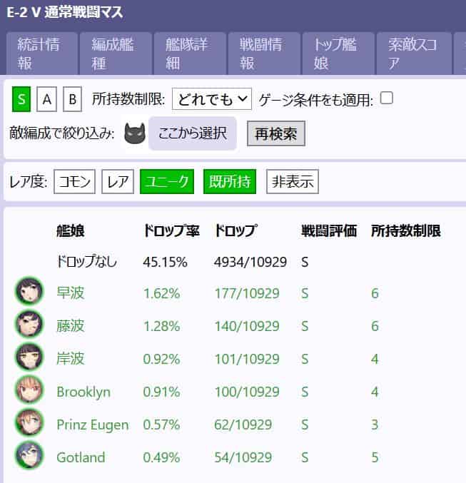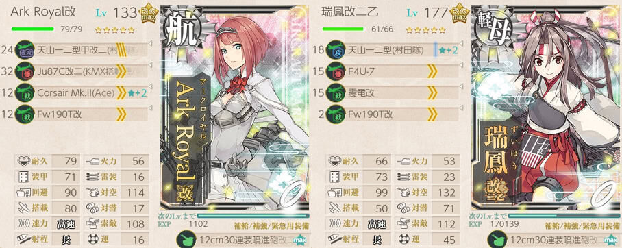 同航戦時に昼戦S勝利が取れたり、ボス戦の成績自体は編成その1より良さそうな印象ですね。