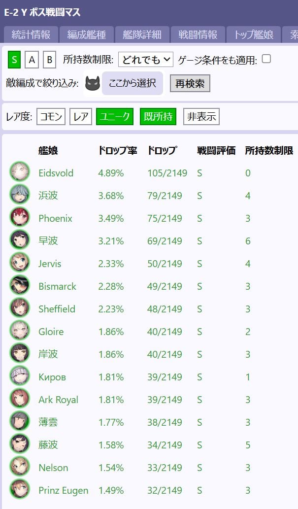 ボスマスのEidsvoldドロップ率が高めで副産物も色々、途中マスでも低確率ながらPrinz Eugenのチャンスがあるのが特徴でしょう。