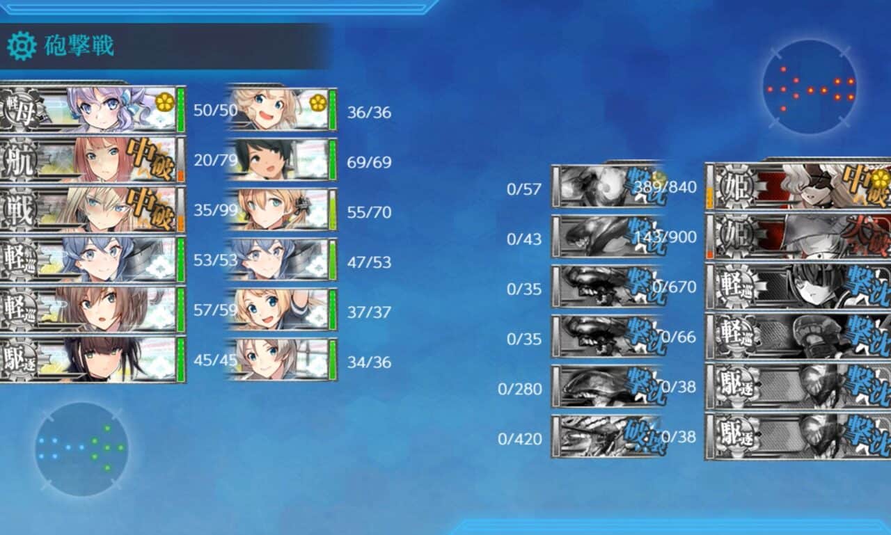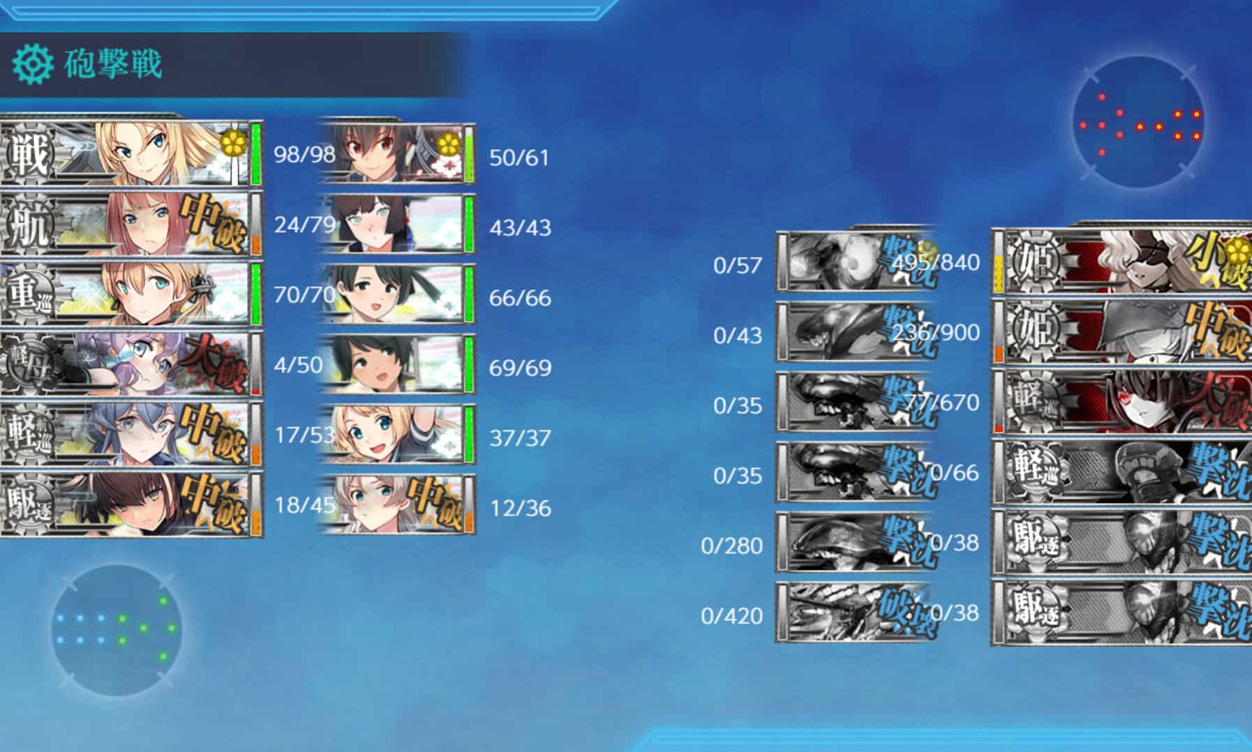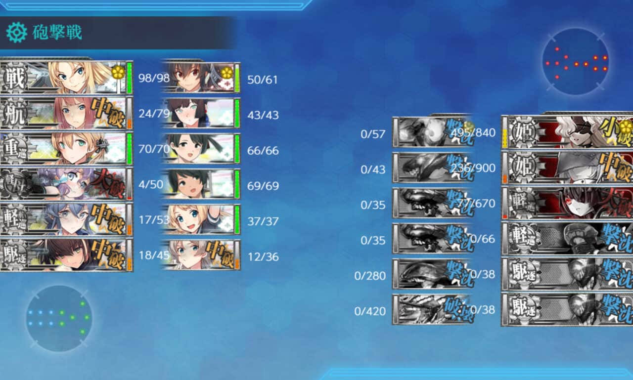 思い返すと編成その1の時はこの残り方は一度も無かったので、小鬼対策のできる艦が2~3隻欲しいという感じでしょうか。