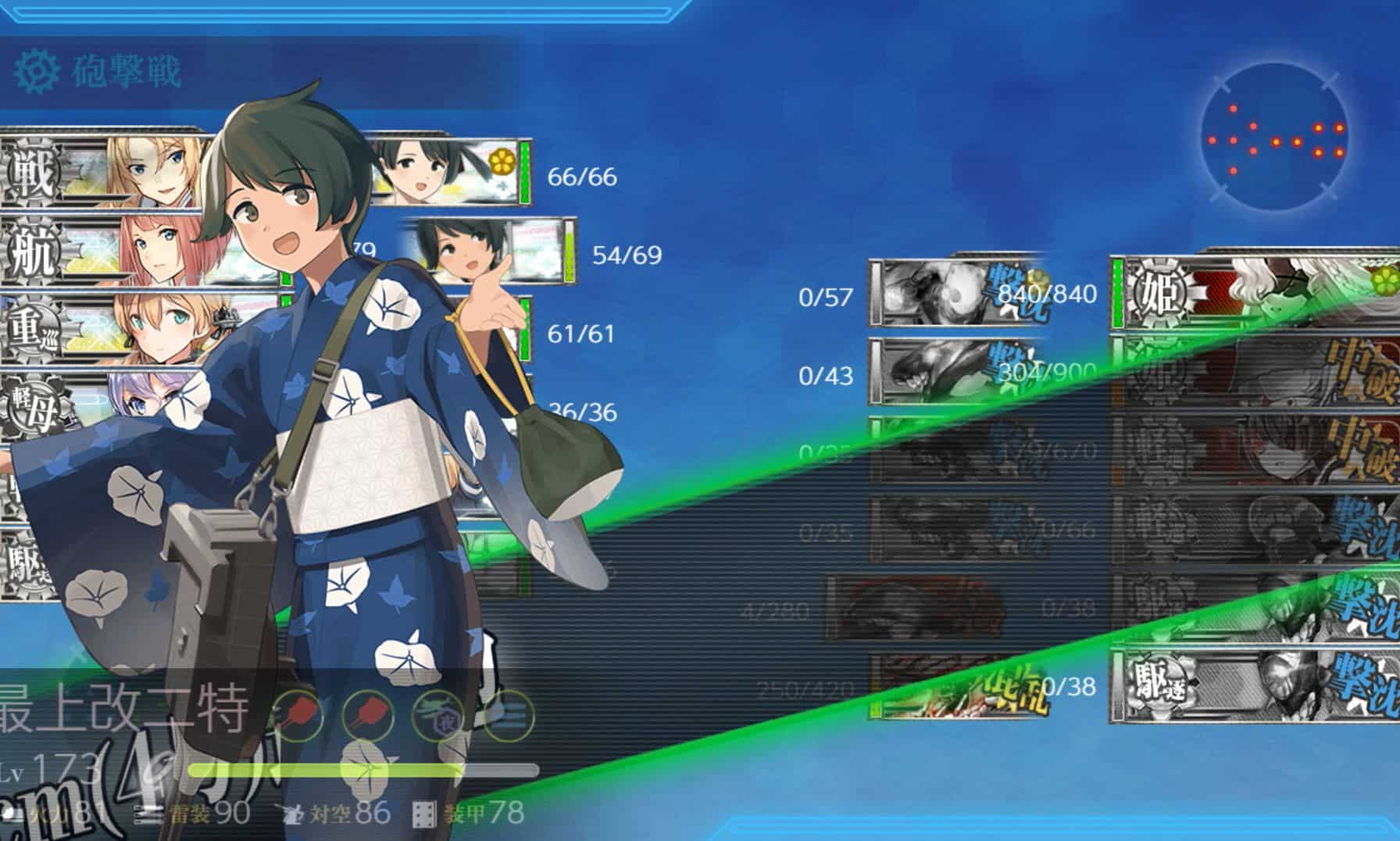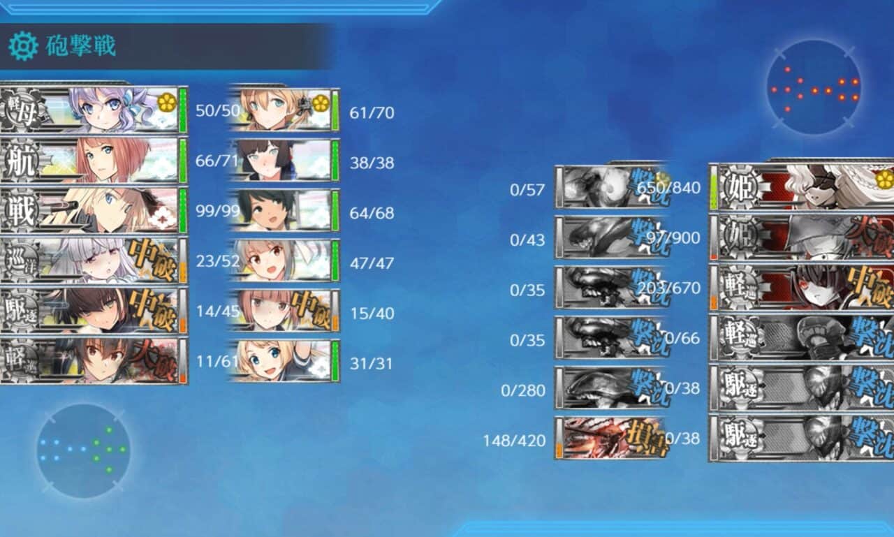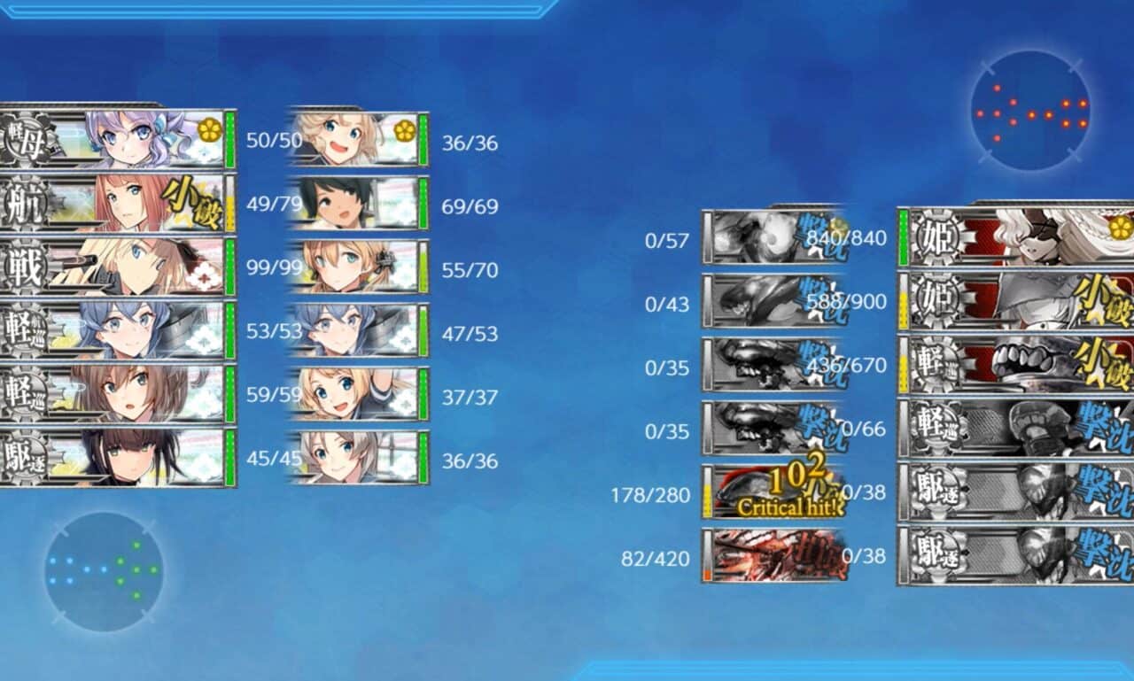 思い返すと編成その1の時はこの残り方は一度も無かったので、小鬼対策のできる艦が2~3隻欲しいという感じでしょうか。