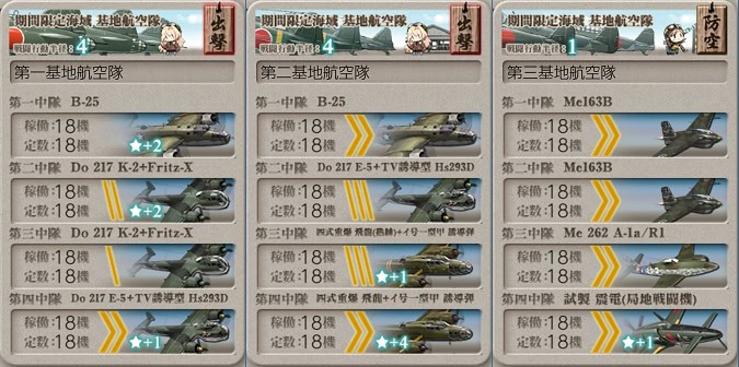 爆装の高い(=対地攻撃に優れた)機体を多めに使いつつ、特効のあるB25も配備。