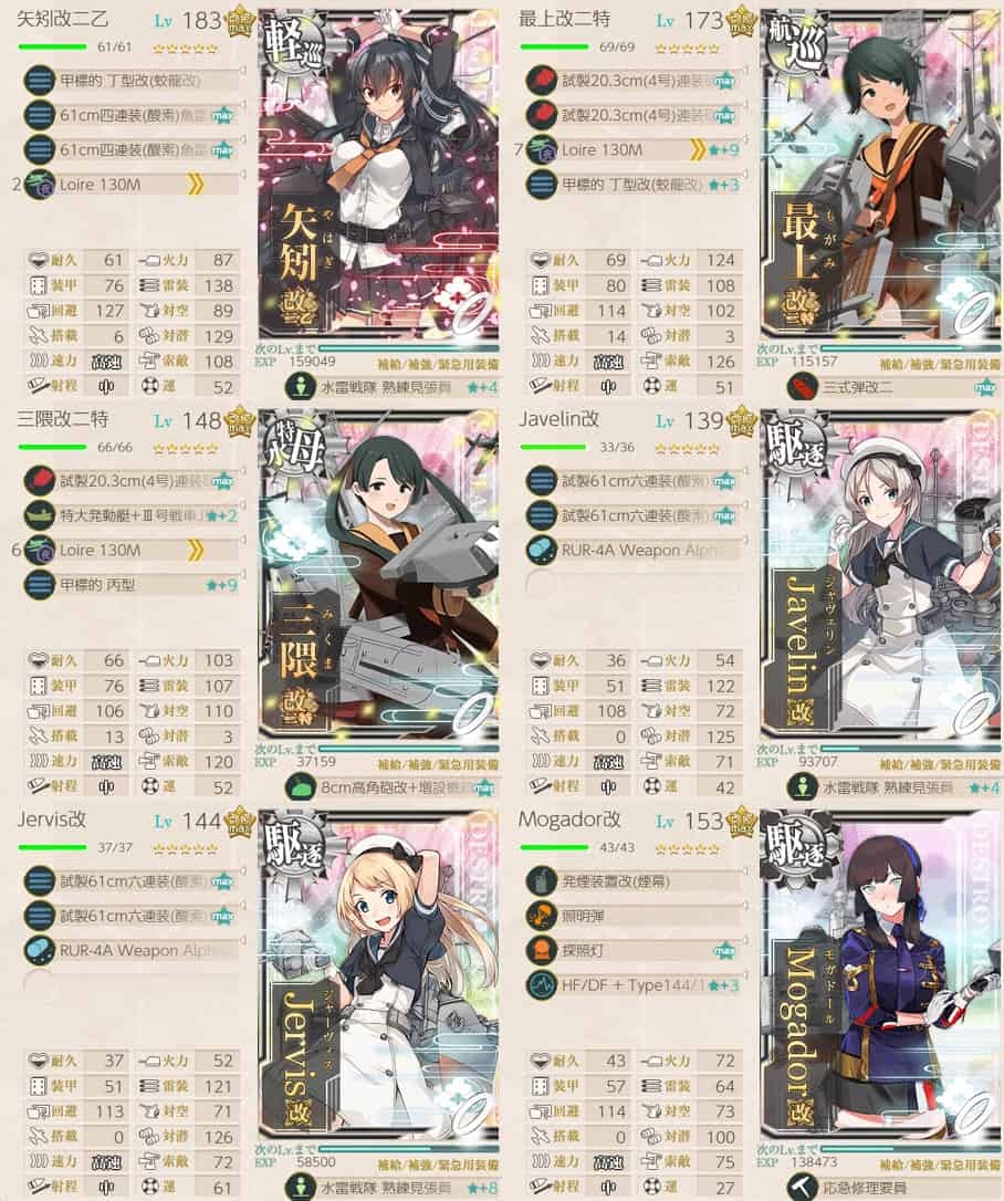 - K→P 戦艦1以下・正規空母1以下・空母系2以下・重巡級2以下・駆逐4以上・高速統一