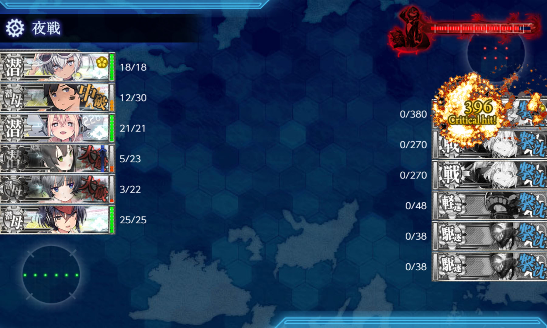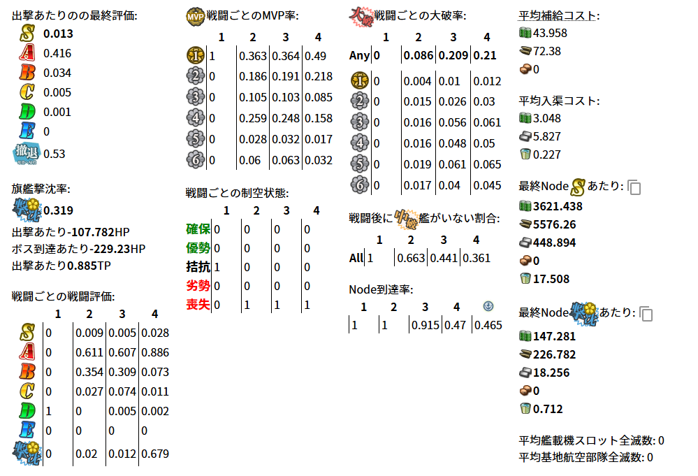 | 出撃 | K撤退 | P撤退 | Qマス逸れ | 到達 | 撃破 |