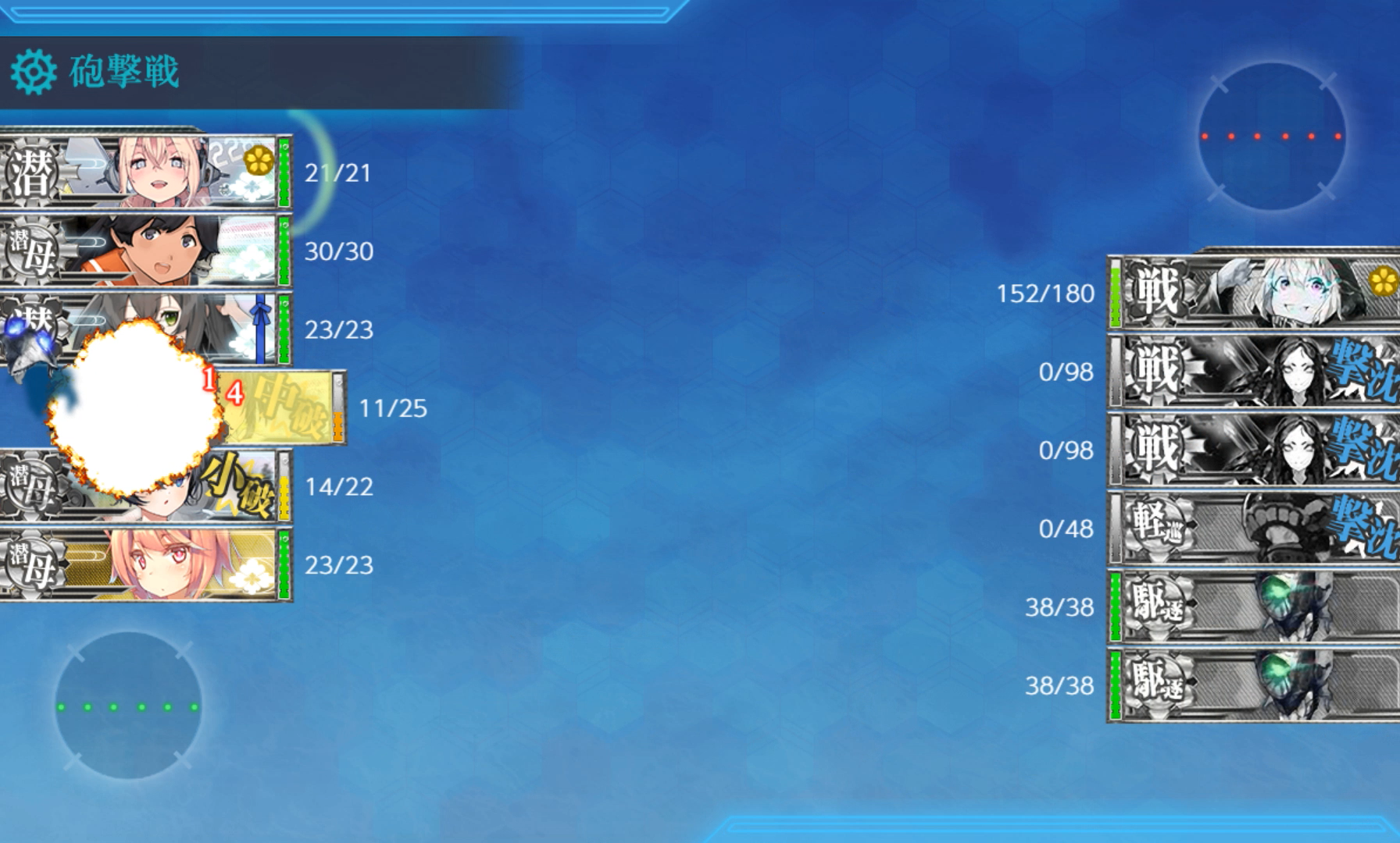 同様にKマスで同航戦時。
