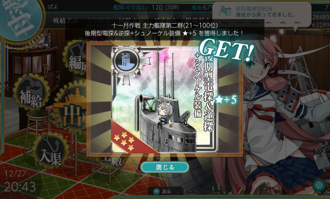 シュノーケルの★5は自分は持っていなかったので(★2まで)最大ですね。ボーナス変わるのかな……?