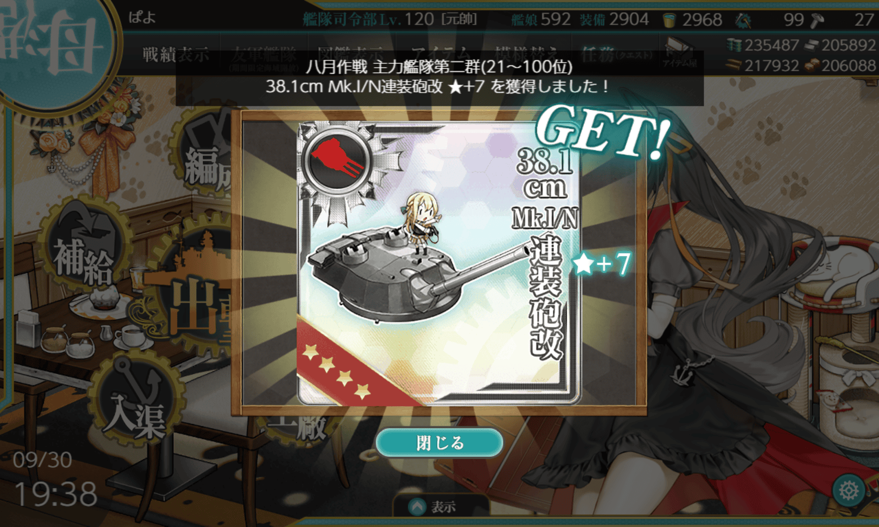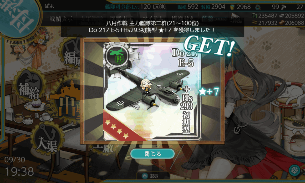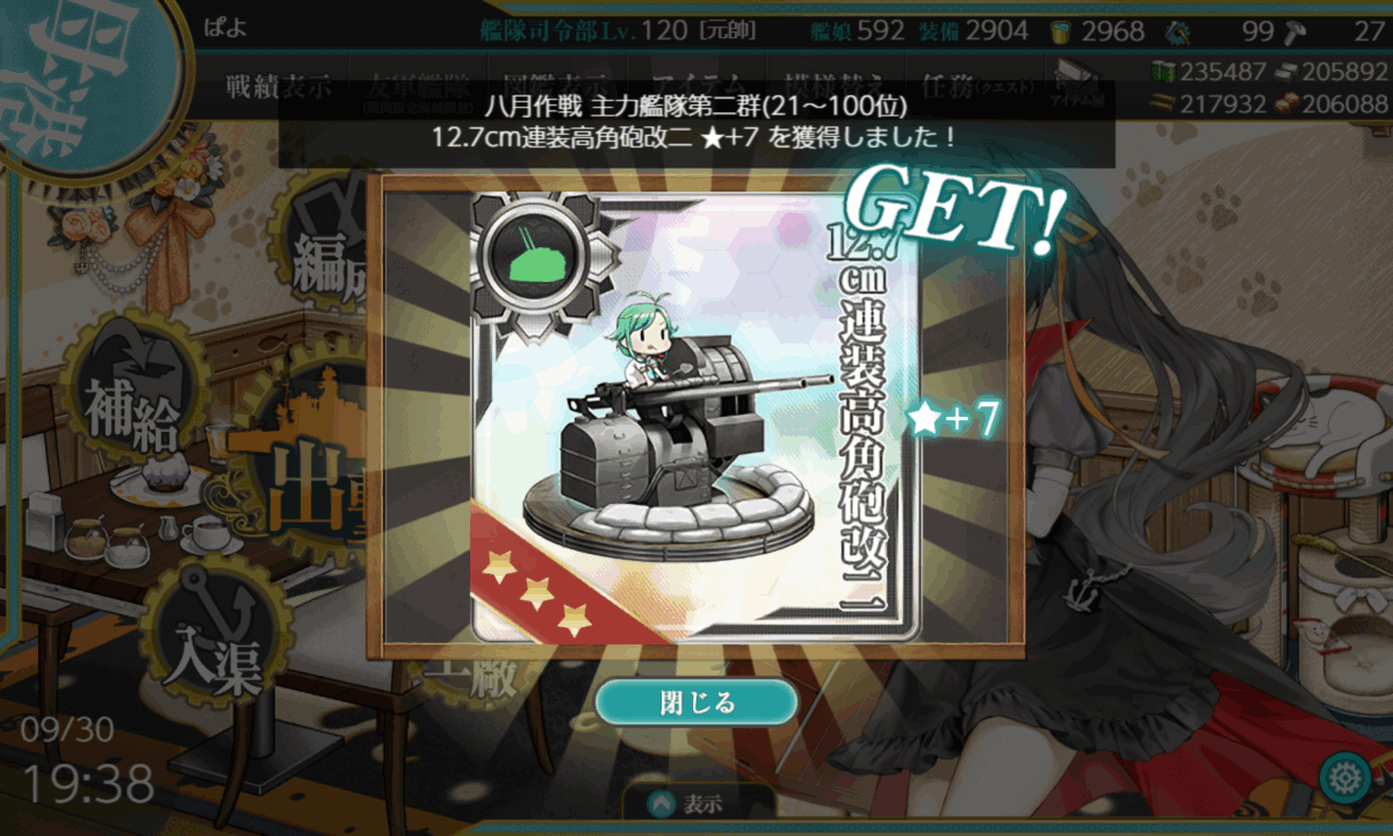 最大効率の防空射撃演習(120/h)は、通常型で40分なので全キラで回すのが大変なんですよね。いずれはやらないといけない気もしますが。