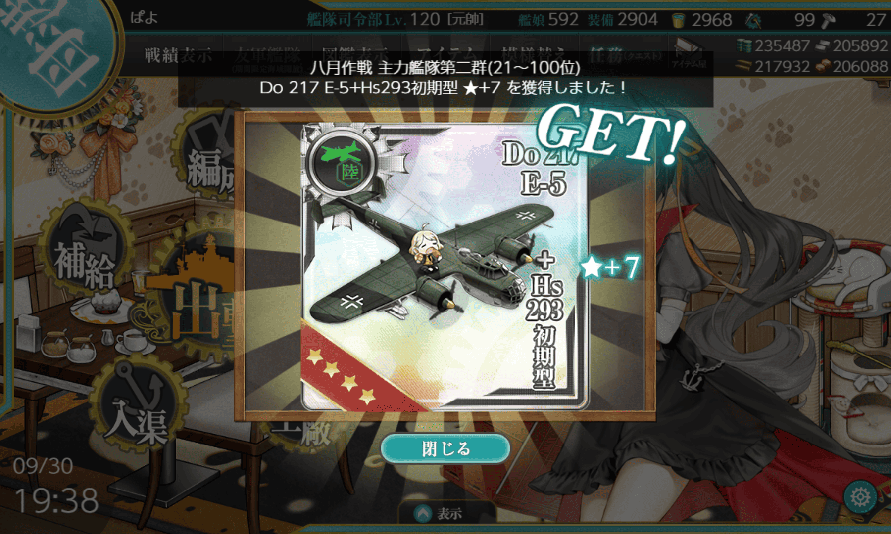備蓄中心のサイクルでしたが、合間を見て3-2を回り、戦果のついでに鋼材を稼ごうとしていました。
