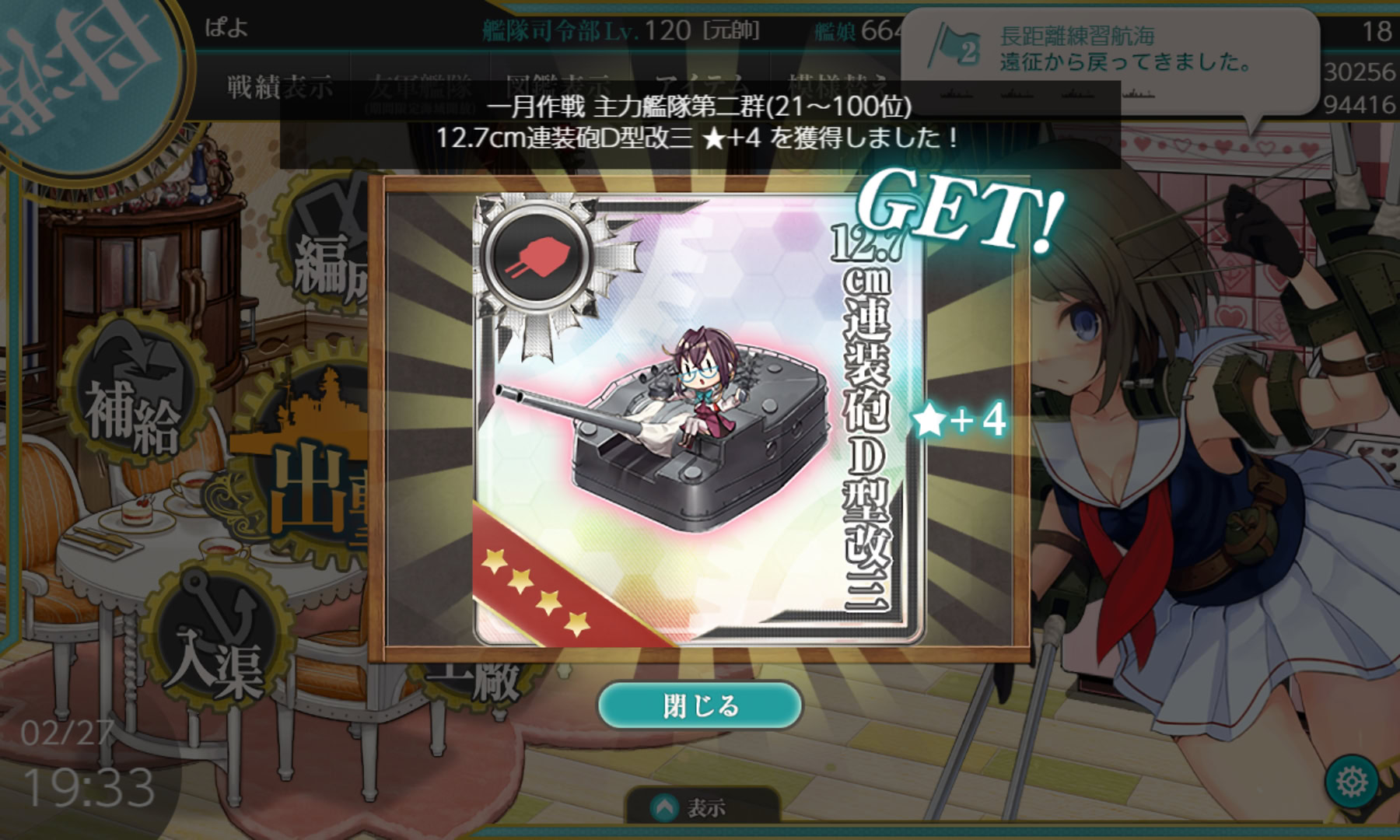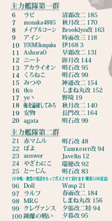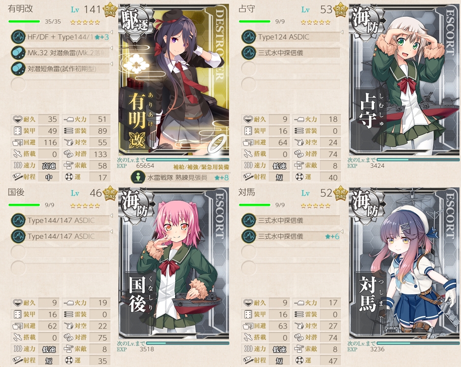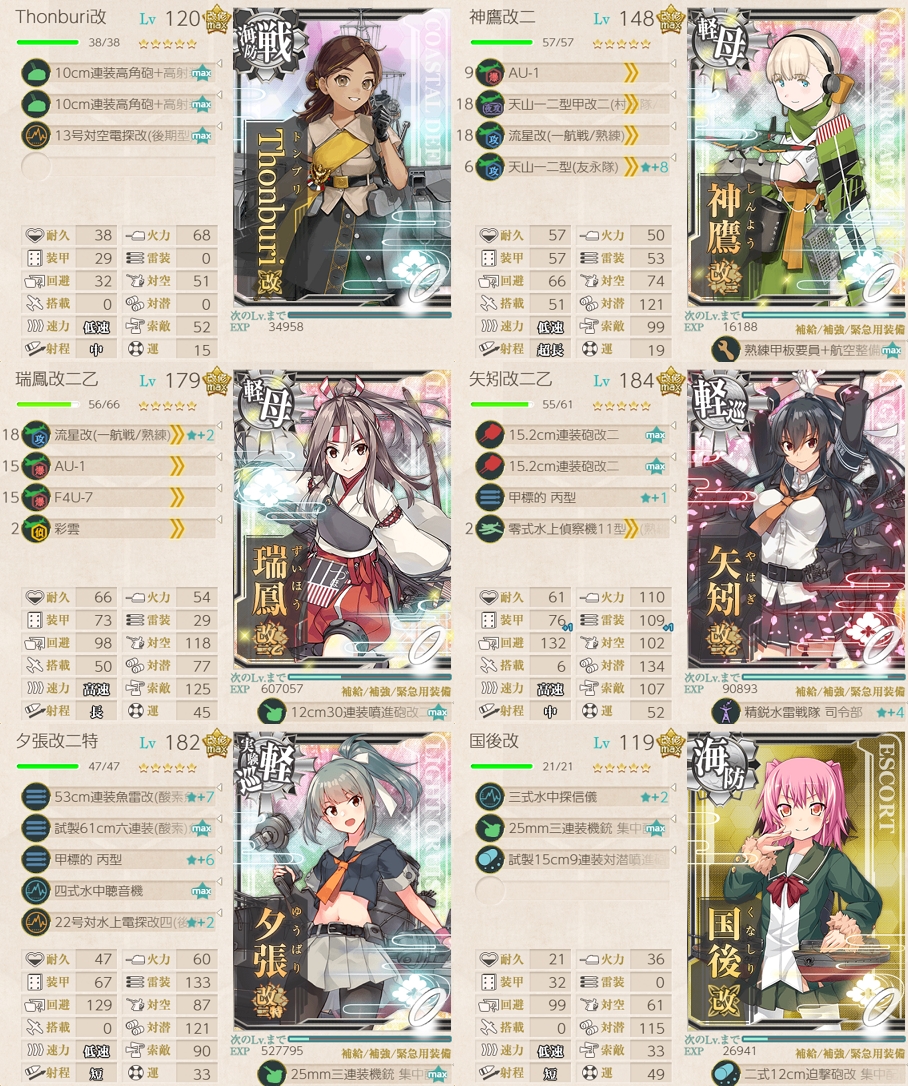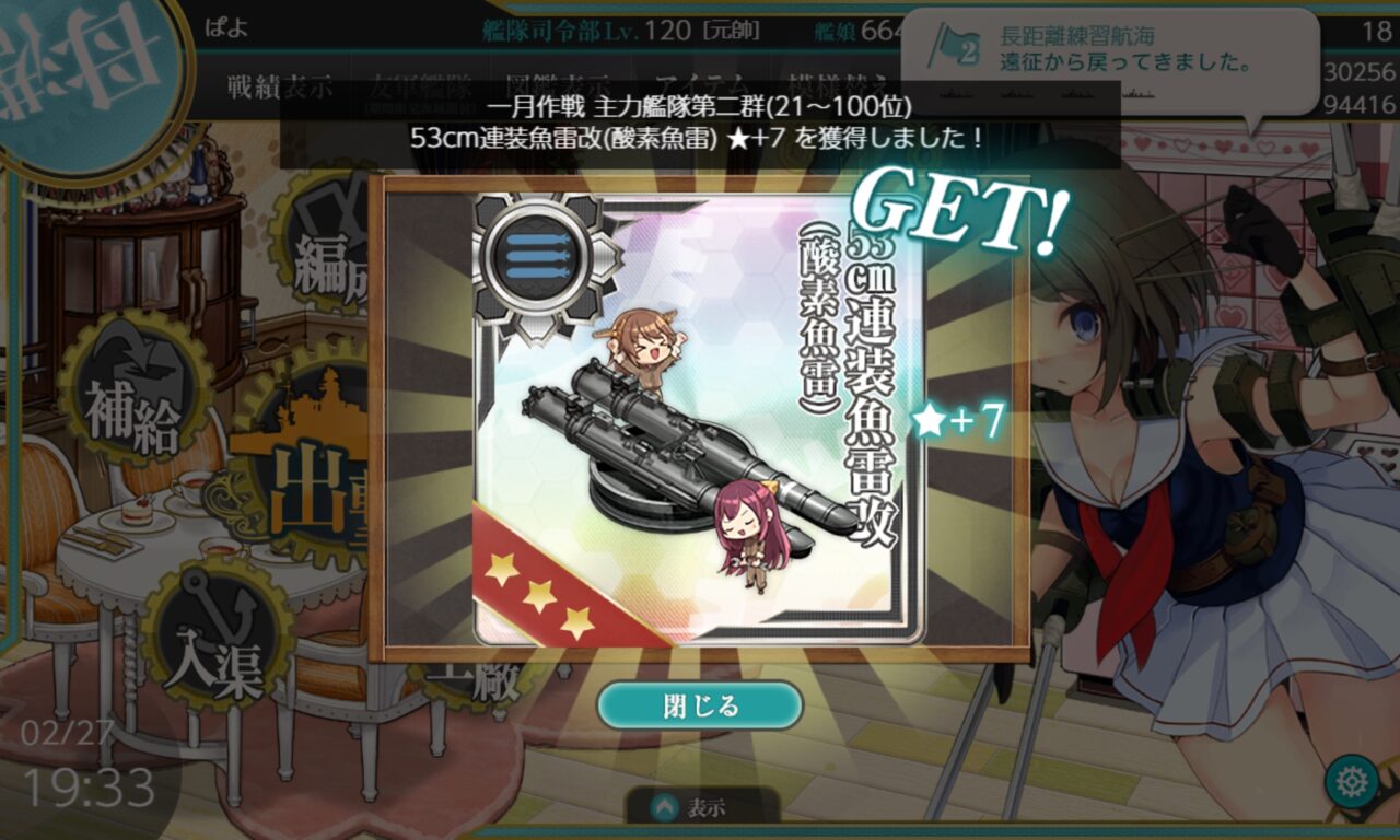 駆逐艦のキラ付けですが、7-1に放り込むのは改二艦に限ることにし、改までで大発を搭載できる人たちと睦月型の改二は1-5でのレベリングに切り替えました。