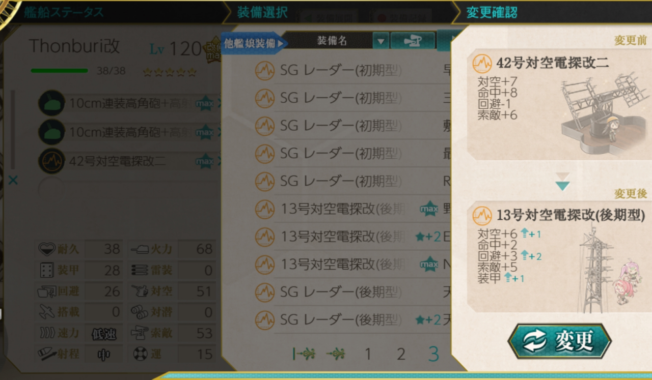 ちなみにThonburiには大型電探を載せることもできるのですが、性能的に何らかの小型電探で良い気がします。